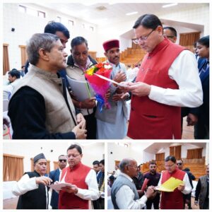 देहरादून :- राज्य रजत जयंती वर्ष उत्सव आयोजन के बाद मुख्यमंत्री पुष्कर सिंह धामी ने जनसंवाद तेज कर दिया है। इसी क्रम में उन्होंने मंगलवार को मुख्यमंत्री कैंप कार्यालय स्थित मुख्य सेवक सदन में आयोजित जनता मिलन कार्यक्रम में प्रदेशभर से आए लोगों की समस्याएं और शिकायतें सुनीं। मुख्यमंत्री ने इस अवसर पर अधिकारियों को निर्देश दिए कि जनता से प्राप्त शिकायतों एवं मांगों पर त्वरित कार्रवाई सुनिश्चित करने के साथ ही नियमित फीडबैक भी लिया जाए। उन्होंने कहा कि इस अवसर को हमें प्रशासन को जनता के और करीब ले जाने के रूप में इस्तेमाल करना होगा।