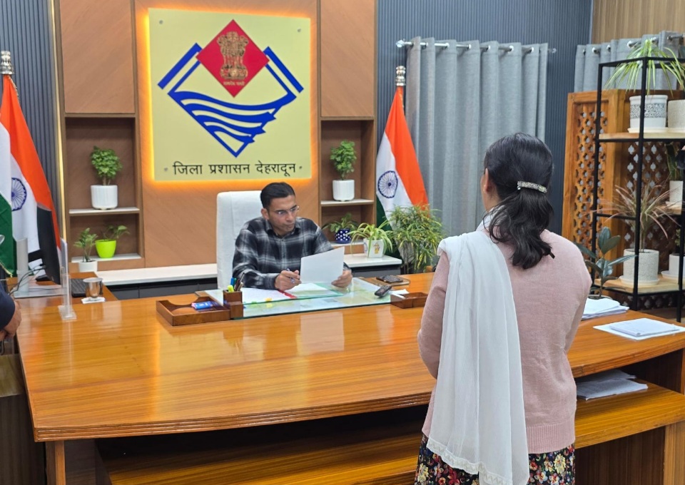 देहरादून :- जिलाधिकारी कार्यालय कक्ष में पति द्वारा प्रताड़ित महिला हेमलता ने पंहुच डीएम सविन बसंल से गुहार लगाई कि उनका पति अद्वैसैनिक बल में कार्यरत तथा पति रोज शराब पीकर मारपीट करता है। एक दिन पति ने उनको एवं उनकी 10 वर्षीय बेटी को जलाने तथा तेजाब डालने का प्रयास किया है। उन्होंने पति से जान की सुरक्षा तथा जीवनयापन खर्चा दिलाने की गुहार लगाई। जिलाधिकारी ने तत्काल आनलाईन प्राथिमिकी दर्ज कराते हुए प्रभारी अधिकारी कलेक्टेट को आवश्यक कार्यवाही के निर्देश दिए।