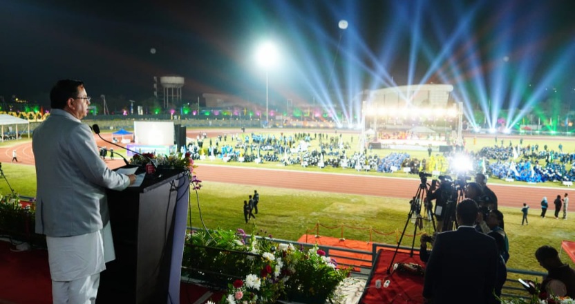 मुख्यमंत्री पुष्कर सिंह धामी का अखिल भारतीय वन खेलकूद प्रतियोगिता 2025 में संबोधन।