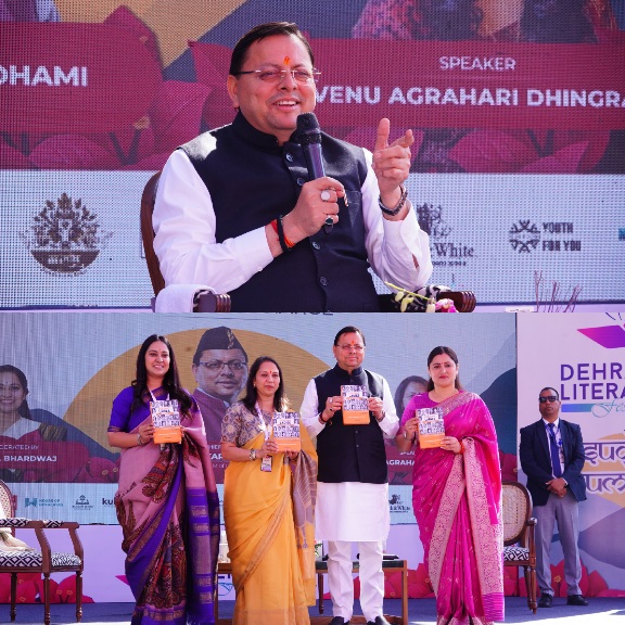 देहरादून :- मुख्यमंत्री पुष्कर सिंह धामी ने शनिवार को मोहनी रोड स्थित दून इंटरनेशल स्कूल में देहरादून लिटरेचर फेस्टिवल में प्रतिभाग किया। इस अवसर पर उन्होंने वेणु अग्रहारा ढ़ींगरा द्वारा लिखित पुस्तक लीडिंग लेडीज ऑफ इण्डिया पुस्तक का विमोचन किया। मुख्यमंत्री ने कहा कि साहित्य भावनाओं, विचारों और अनुभवों को व्यक्त करने का सशक्त माध्यम है। सामाजिक और सांस्कृतिक जागरूकता में भी साहित्य की महत्वपूर्ण भूमिका होती है। उन्होंने आशा व्यक्त की कि लीडिंग लेडीज ऑफ इण्डिया पुस्तक पाठकों विशेष रूप से महिलाओं को आगे बढ़ने के लिए प्रेरित करेगी।