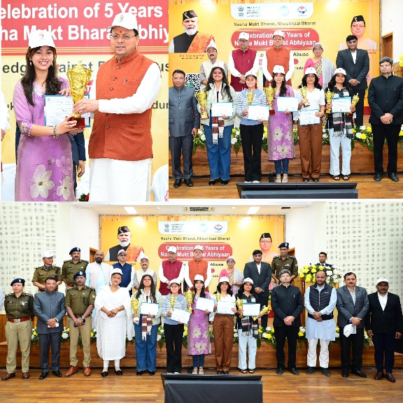 मुख्यमंत्री धामी ने उपस्थित युवाओं को नशा मुक्त भारत अभियान की शपथ भी दिलाई, साथ ही स्कूल कॉलेजों में राज्य स्तर पर आयोजित भाषण एवं निंबध प्रतियोगिता के विजेताओं को भी सम्मानित किया।