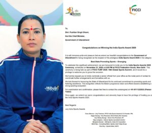 देहरादून :- उत्तराखंड की खेल मंत्री रेखा आर्या ने प्रदेश को ‘इंडिया स्पोर्ट्स अवार्ड 2025’ में सर्वश्रेष्ठ राज्य (उभरता हुआ) का गौरव हासिल करने पर मुख्यमंत्री पुष्कर सिंह धामी और पूरे उत्तराखंड को बधाई दी है। मंत्री रेखा आर्य ने इस उपलब्धि को प्रदेश के खेल विकास के प्रति समर्पण और खेलों के क्षेत्र में किए गए निरंतर प्रयासों का जीवंत प्रमाण बताया।