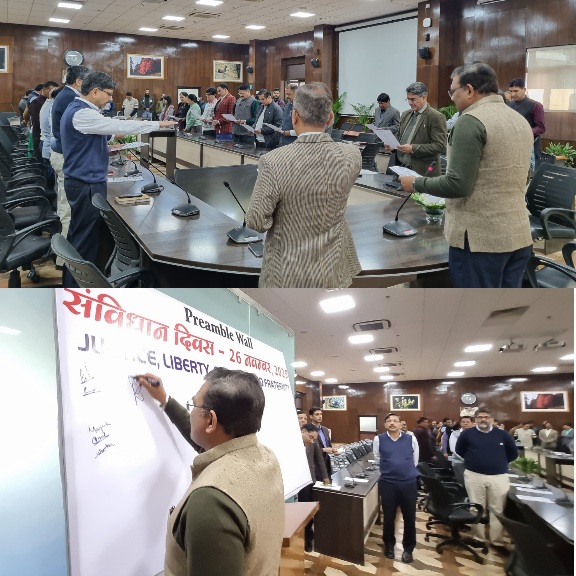 देहरादून :-मुख्य सचिव आनन्द बर्द्धन ने बुधवार को सचिवालय में संविधान दिवस के अवसर पर अधिकारियों एवं कर्मचारियों के साथ भारत का संविधान की प्रस्तावना का पाठ किया। इस अवसर पर सभी ने प्रस्तावना पट पर हस्ताक्षर भी किए।