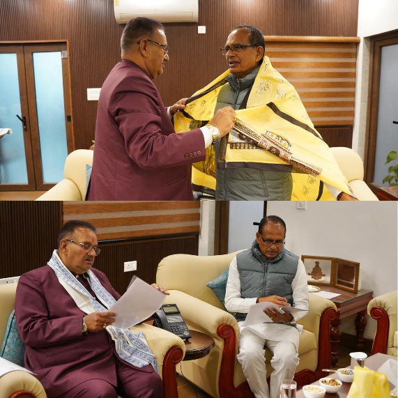 देहरादून/नई दिल्ली :- प्रदेश के कृषि, किसान कल्याण एवं ग्राम्य विकास मंत्री गणेश जोशी ने बुधवार को नई दिल्ली में केंद्रीय कृषि एवं ग्रामीण विकास मंत्री शिवराज सिंह चौहान से शिष्टाचार भेंट की। मुलाक़ात के दौरान कृषि और ग्रामीण विकास से जुड़े अनेक महत्वपूर्ण विषयों पर विस्तारपूर्वक एवं सार्थक चर्चा की गई। इस अवसर पर मंत्री गणेश जोशी ने केंद्रीय मंत्री शिवराज सिंह चौहान को बद्रीनाथ धाम का प्रसाद एवं शॉल भेंट किया।