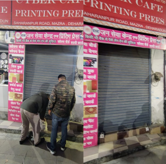 देहरादून :- जिलाधिकारी सविन बंसल के निर्देश पर जिला प्रशासन की टीम ने सहारनपुर रोड माजरा अवस्थित देवभूमि सीएससी सेंटर में औचक निरीक्षण एवं छापेमारी की कार्रवाई की। यह कार्रवाई उपजिलाधिकारी कुमकुम जोशी व तहसीलदार सदर सुरेंद्र देव के नेतृत्व में की गई।