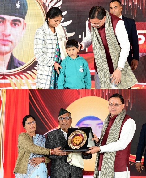 देहरादून :- मुख्यमंत्री पुष्कर सिंह धामी ने शुक्रवार को सहस्त्रधारा रोड, स्थित एक होटल में उत्तराखंड अनन्य सम्मान कार्यक्रम में प्रतिभाग किया। इस दौरान मुख्यमंत्री ने शहीद सैनिकों के परिजनों को सम्मानित किया। मुख्यमंत्री ने शहीदों को श्रद्धांजलि अर्पित करते हुए कहा कि शहीदों के परिजनों का संघर्ष, पीड़ा और देश के प्रति अटूट निष्ठा हम सभी के लिए प्रेरणा है। उन्होंने कहा देवभूमि उत्तराखंड वीरभूमि के रूप में भी जाना जाता है। प्रदेश के लगभग प्रत्येक परिवार का सदस्य सेना या अर्ध सैनिक बलों से जुड़ा हुआ है। उत्तराखंड के वीर सपूतों ने अपने प्राणों की बाजी लगाकर मातृभूमि की रक्षा की है।