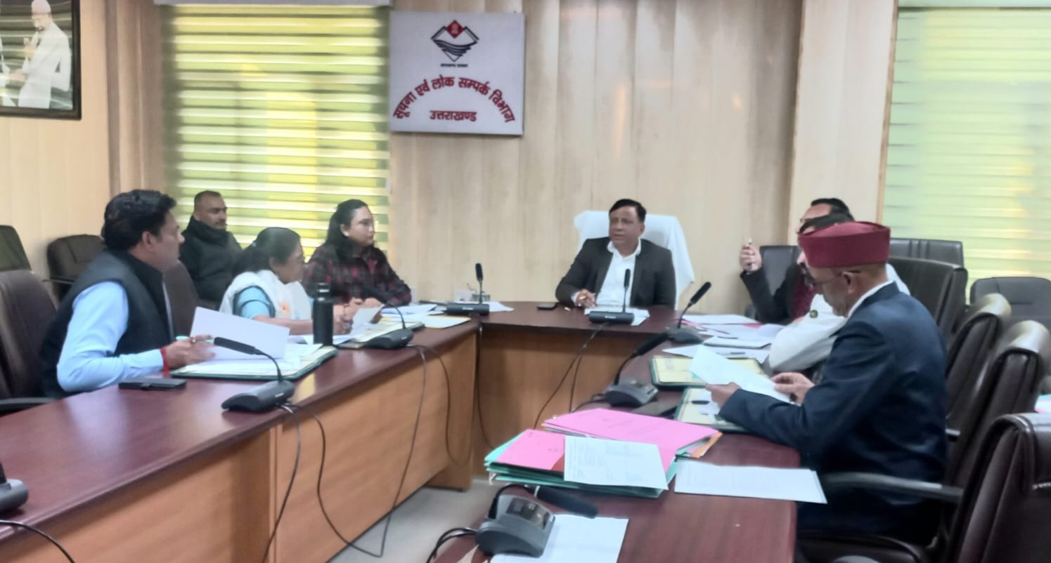 बैठक में सूचना विभाग के संयुक्त निदेशक के.एस.चौहान, नितिन उपाध्याय, वरिष्ठ वित्त अधिकारी श्रीमती शशि सिंह एवं समितियों के सदस्यगण लक्ष्मण सिंह नेगी, गिरीश तिवारी, अमित शर्मा, श्रीमती शशि शर्मा उपस्थित रहे।