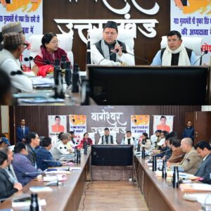 देहरादून/बागेश्वर :- मुख्यमंत्री पुष्कर सिंह धामी ने आज कलेक्ट्रेट सभागार बागेश्वर में जिला स्तरीय अधिकारियों के साथ समीक्षा बैठक कर विभिन्न विभागों—लोक निर्माण विभाग, शिक्षा, पीएमजीएसवाई, जल संस्थान, विद्युत, महिला एवं बाल विकास, समाज कल्याण, कृषि एवं उद्यान—की योजनाओं एवं कार्यक्रमों की प्रगति की विस्तृत समीक्षा की।