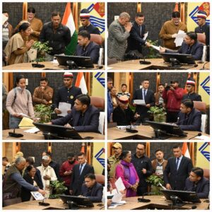 एक पैर से दिव्यांग रेखा देवी ने पुत्री की शादी के लिए आर्थिक सहायता की गुहार पर ओसी क्लेक्ट्रेट को जांच करवा के प्रकरण प्रस्तुत करने के निर्देश दिए गए। साथ ही समाज कल्याण अधिकारी को महिला का दिव्यांग प्रमाण पत्र भी बनाने को कहा गया। अठूरवाला निवासी अनीता चौहान ने जिलाधिकारी से गुहार लगाएगी दैवीय आपदा के दौरान उनका मकान ध्वस्त हो गया है उन्होंने पुनर्विस्थापन की टीम से गुहार लगा जिस पर जिलाधिकारी ने अपर जिलाधिकारी एवं निदेशक टीडीसी पुनर्वास को कार्रवाई के निर्देश दिए।