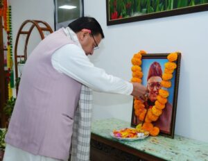 देहरादून :- मुख्यमंत्री पुष्कर सिंह धामी ने उत्तराखंड के प्रथम मुख्यमंत्री नित्यानंद स्वामी की पुण्यतिथि पर उनके चित्र पर श्रद्धासुमन अर्पित कर उनका भावपूर्ण स्मरण किया।