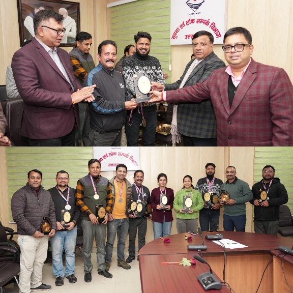 देहरादून :- उत्तराखण्ड सूचना कर्मचारी संघ (मुख्यालय), देहरादून द्वारा प्रथम इंडोर खेल प्रतियोगिता-2025 का आयोजन किया गया। मंगलवार को प्रतियोगिता के विजयी प्रतिभागियों को महानिदेशक सूचना बंशीधर तिवारी द्वारा पुरस्कार प्रदान किये गये।
