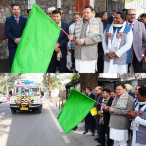 देहरादून :- मुख्यमंत्री पुष्कर सिंह धामी ने गुरूवार को मुख्यमंत्री कैम्प कार्यालय से “ग्रामीण गढ़वाल समग्र स्वास्थ्य सेवा परियोजना” के अंतर्गत मोबाइल मेडिकल यूनिट वाहनों का फ्लैग‑ऑफ किया। यह परियोजना ग्राफिक एरा इंस्टीट्यूट ऑफ मेडिकल साइंसेज एवं हॉस्पिटल, देहरादून ने मुख्यमंत्री की प्रेरणा से शुरु की है।