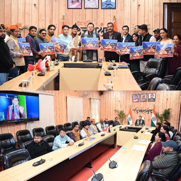 देहरादून :- मुख्यमंत्री पुष्कर सिंह धामी ने शनिवार को मुख्यमंत्री आवास में पैंली-पैंली बार उत्तराखण्डी गीत का विमोचन किया।