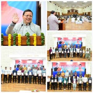 देहरादून :- मुख्यमंत्री पुष्कर सिंह धामी ने बुधवार को मुख्यमंत्री कैम्प कार्यालय स्थित मुख्य सेवक सदन में 215 उपनिरीक्षकों को नियुक्ति पत्र प्रदान किये। जिसमें 104 उप-निरीक्षक, 88 गुल्मनायक (पी.ए.सी) एवं 23 अग्निशमन द्वितीय अधिकारी शामिल हैं।