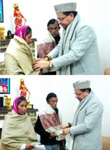 देहरादून :- मुख्यमंत्री पुष्कर सिंह धामी से आज मुख्यमंत्री आवास में स्वर्गीय अंकिता भंडारी के पिता वीरेंद्र सिंह भंडारी व माता श्रीमती सोनी देवी ने भेंट की। इस अवसर पर उन्होंने प्रकरण से संबंधित अपने मंतव्य एवं भावनाएं मुख्यमंत्री के समक्ष रखीं। मुख्यमंत्री ने उन्हें पूरी संवेदनशीलता के साथ सुना और आश्वस्त किया कि राज्य सरकार पीड़ित परिवार के साथ मजबूती से खड़ी है।