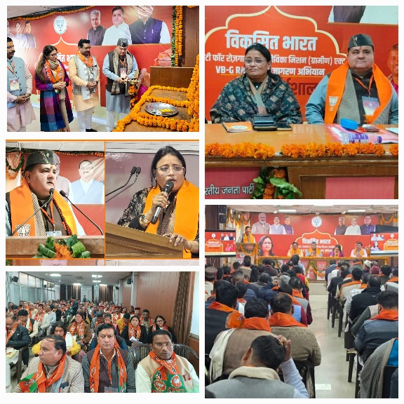 देहरादून :- प्रदेश कार्यशाला में वीबी जी राम जी योजना के विकासोन्मुख एवं जनकल्याणकारी स्वरूप पर हुई विस्तृत चर्चा को जन जन तक ले जाएगी भाजपा। इस अवसर पर राष्ट्रीय उपाध्यक्ष, जनजागरण अभियान की राष्ट्रीय सह संयोजक एवं प्रदेश सह प्रभारी श्रीमती रेखा वर्मा ने कहा, विकसित भारत के लिए सिर्फ राहत ही नहीं, विकास आधारित ऐसी योजनाओं की भी जरूरत है। वहीं प्रदेश अध्यक्ष एवं राज्यसभा सांसद महेंद्र भट्ट ने कहा, मोदी जी ने नाम से अधिक, ग्रामीण रोजगार योजनाओं के पीछे की गलत नीयत को हमेशा के लिए बदल दिया है।