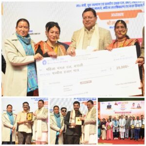 देहरादून :- स्वामी विवेकानंद जयंती पर आयोजित राष्ट्रीय युवा दिवस समारोह में विभिन्न क्षेत्रों में अच्छा काम करने वाले युवा मंगल दल और महिला मंगल दलों को सम्मानित किया गया । मुख्य आयोजन सोमवार को परेड ग्राउंड स्थित मल्टीपरपज हॉल में किया गया।