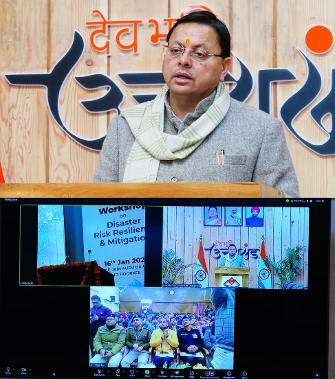 देहरादून :- मुख्यमंत्री पुष्कर सिंह धामी ने शुक्रवार को भारतीय प्रौद्योगिकी संस्थान (आईआईटी), रुड़की में आपदा जोखिम न्यूनीकरण एवं सहनशीलता विषय पर एक दिवसीय कार्यशाला को वर्चुअल माध्यम से संबोधित किया।