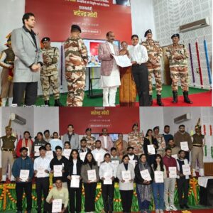 रोजगार मेले के माध्यम से भारत तिब्बत सीमा पुलिस बल के सीमाद्वार कैम्प में विभिन्न केन्द्रीय सशस्त्र पुलिस बल एवं अन्य संगठनों जैसे कि भारत तिब्बत सीमा पुलिस बल, सीमा सुरक्षा बल, केन्द्रीय रिजर्व पुलिस बल, केन्द्रीय औद्योगिक सुरक्षा बल, सशस्त्र सीमा बल, असम राइफल्स, डी.एफ.एस., एफ.एस.आई. अखिल भारतीय आयुर्विज्ञान संस्था (ऋषिकेश) एवं इसरो में चयनित 253 युवाओं को नियुक्ति पत्र वितरित किए गए। इससे पहले प्रधानमंत्री श्री नरेंद्र मोदी द्वारा वर्चुअल माध्यम से युवाओं को उनकी नियुक्ति पर शुभकामनाएं एवं बधाई भी दी गईं।