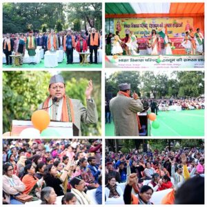 देहरादून :- मुख्यमंत्री पुष्कर सिंह धामी ने गणतंत्र दिवस के अवसर पर देहरादून स्थित गांधी पार्क में भारत विकास परिषद द्वारा आयोजित सामूहिक वंदे मातरम् गायन कार्यक्रम में प्रतिभाग किया।