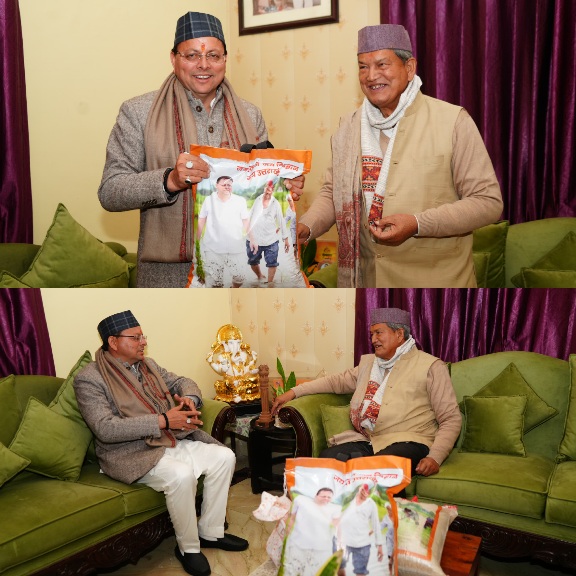 इस अवसर पर मुख्यमंत्री धामी ने अपनी ओर से एक आत्मीय प्रतीक के रूप में अपने खेत में उत्पादित चावल हरीश रावत को भेंट किए। मुख्यमंत्री ने कहा कि यह भेंट उत्तराखंड की कृषि परंपरा, किसानों की मेहनत और स्थानीय उत्पादों के प्रति सम्मान का प्रतीक है।