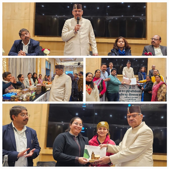 देहरादून :- उत्तराखंड ग्राम्य विकास समिति (रीप) के अंतर्गत रूरल एंटरप्राइज एक्सीलरेशन प्रोजेक्ट (ग्रामोत्थान) द्वारा 9 एवं 10 फरवरी को देहरादून के एक निजी होटल में आयोजित दो दिवसीय राज्य स्तरीय मल्टी-स्टेकहोल्डर प्लेटफ़ॉर्म कार्यक्रम में ग्राम्य विकास मंत्री गणेश जोशी ने बतौर मुख्य अतिथि प्रतिभाग किया। कार्यक्रम के दौरान ग्राम्य विकास मंत्री गणेश जोशी ने प्रदेश के विभिन्न जनपदों से आए उत्तराखंड के विशेष एवं पारंपरिक उत्पादों की प्रदर्शनी का अवलोकन किया तथा उत्कृष्ट कार्य करने वाले क्लस्टर लेवल फेडरेशन समूहों को प्रमाण पत्र एवं स्मृति चिन्ह प्रदान कर सम्मानित किया।