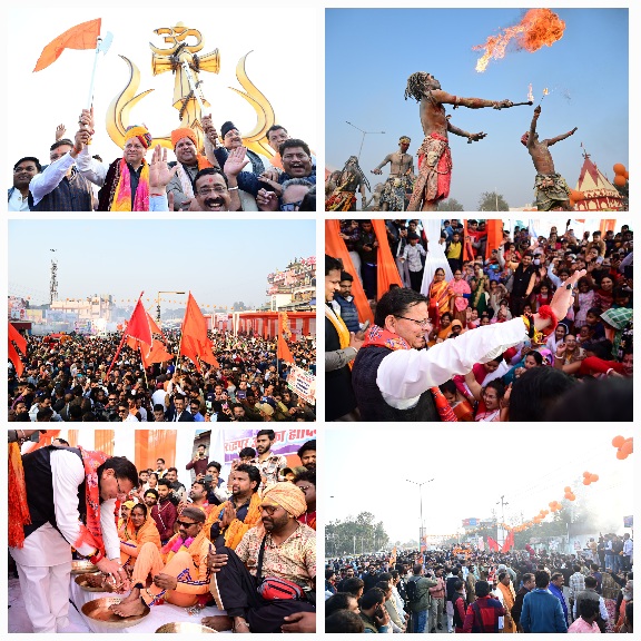 इससे पूर्व माननीय मुख्यमंत्री धामी ने त्रिशूल चौक का लोकार्पण किया उससे पूर्व उन्होंने कांवरियों की पैर पखारे एवं उनको अंगवस्त्र व पुष्प माला भेंट कर उनका अभिवादन किया, इसके उपरांत त्रिशूल चौक से सरस मेला कार्यक्रम स्थल गांधी पार्क तक आयोजित शिव बारात में प्रतिभाग किया। शिव बारात में माननीय मुख्यमंत्री का विभिन्न संगठनों व जनता द्वारा फूलमाला,पुष्पवर्षा कर भव्य स्वागत किया।