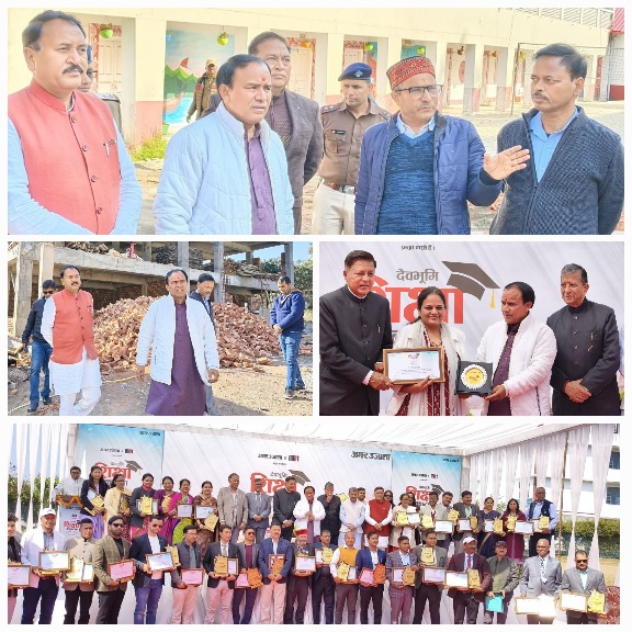 देहरादून/हल्द्वानी :- सूबे के विद्यालयी शिक्षा मंत्री डॉ. धन सिंह रावत ने आज कुमाऊँ मण्डल के एक दिवसीय दौरे के दौरान जिला शिक्षा एवं प्रशिक्षण संस्थान (डायट) भीमताल का औचक निरीक्षण किया। उन्होंने विभागीय अधिकारियों से संस्थान में शैक्षिक एवं प्रशासनिक व्यवस्थाओं की जानकारी ली। डाॅ. रावत ने भ्रमण के दौरान विभिन्न विद्यालयों का निरीक्षण कर बोर्ड परीक्षाओं की व्यवस्थाओं को भी परखा। इसके अलावा उन्होंने हल्द्वानी में आयोजित सम्मान समारोह में शिक्षा के क्षेत्र में उत्कृष्ट कार्य करने वाले शिक्षकों को भी सम्मानित किया।