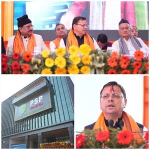 देहरादून/हल्द्वानी :- शनिवार को मुख्यमंत्री पुष्कर सिंह धामी ने जनपद नैनीताल के हल्द्वानी भ्रमण के दौरान रामपुर रोड स्थित पीएसपी मल्टी सुपर स्पेशियलिटी हॉस्पिटल एवं रिसर्च सेंटर के शुभारंभ कार्यक्रम में प्रतिभाग किया।