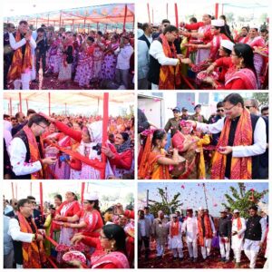 सीएम ने जनसमुदाय संग साझा की उत्सव की खुशियां जनता ने पुष्पवर्षा कर किया भव्य स्वागत।