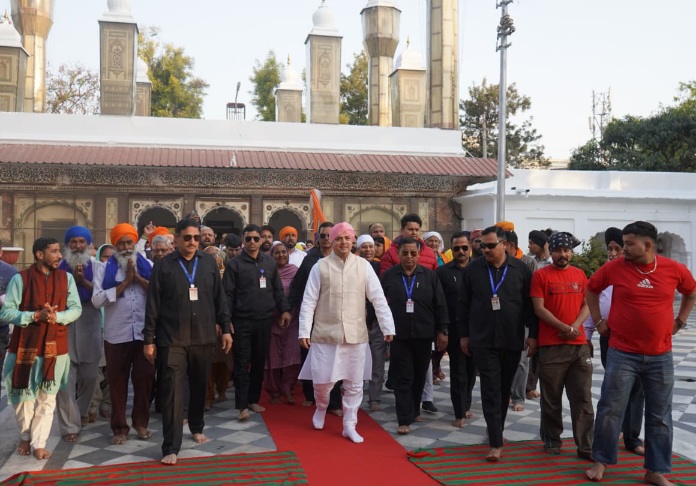 पुष्प वर्षा व श्री गुरु राम राय जी महाराज के जयकारों के साथ हुआ श्री दरबार साहिब में पैदल संगत का भव्य स्वागत।