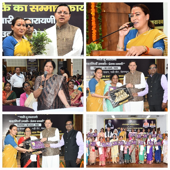 देहरादून :- अंतर्राष्ट्रीय महिला दिवस के अवसर पर मुख्य सेवक सदन में “नारी तू नारायणी, कहानी उनकी प्रेरणा सबकी” कार्यक्रम का आयोजन किया गया। कार्यक्रम में मुख्यमंत्री पुष्कर सिंह धामी और महिला सशक्तिकरण एवं बाल विकास मंत्री रेखा आर्या ने प्रदेश के विभिन्न जिलों से आई 38 वरिष्ठ महिलाओं को सम्मानित किया।