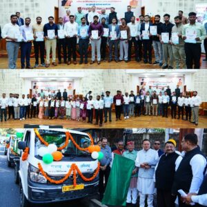 देहरादून :- मुख्यमंत्री पुष्कर सिंह धामी ने सोमवार को मुख्यमंत्री कैम्प कार्यालय स्थित मुख्य सेवक सदन में शहरी विकास विभाग के अन्तर्गत चयनित 63 सफाई निरीक्षकों को नियुक्ति पत्र प्रदान किए। इस अवसर पर मुख्यमंत्री ने लगभग 62 करोड़ की अनुमानित लागत से बनने वाले शहरी विकास निदेशालय के नवीन भवन का वर्चुअल शिलान्यास भी किया। मुख्यमंत्री ने कार्यक्रम के दौरान कूड़ा निस्तारण वाहनों को हरी झंडी दिखाकर रवाना भी किया। मुख्यमंत्री ने कहा कि चार वर्षों में राज्य में लगभग 30 हजार युवाओं को सरकारी नौकरी प्रदान की जा चुकी है।
