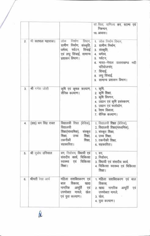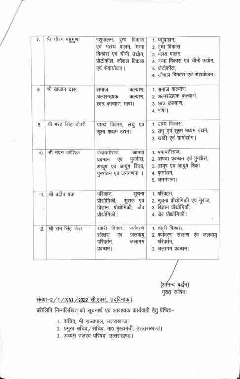 धामी खुद देखेंगे सामान्य प्रशासन, गृह, कार्मिक, नियुक्ति एवं प्रशिक्षण सूचना एवं जनसंपर्क विभाग।