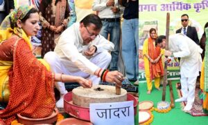 देहरादून :- मुख्यमंत्री पुष्कर सिंह धामी ने राजधानी देहरादून स्थित परेड ग्राउंड में आयोजित “सरकार के 4 साल बेमिसाल” कार्यक्रम के अंतर्गत विभागों द्वारा लगाए गए स्टॉलों का निरीक्षण किया। कृषि विभाग द्वारा लगाए गए परंपरागत आर्थिक कृषि गतिविधि स्टॉल का निरीक्षण के दौरान मुख्यमंत्री ने ग्रामीण महिलाओं के साथ सहभागिता करते हुए पारंपरिक कृषि एवं घरेलू उपकरण ओखली, सिलबट्टा एवं जांदरा भी चलाया। उन्होंने महिलाओं के साथ संवाद स्थापित कर उनके कार्यों की सराहना की तथा उनके योगदान को प्रदेश की अर्थव्यवस्था के लिए महत्वपूर्ण बताया। मुख्यमंत्री की इस सहभागिता से उपस्थित महिलाओं में उत्साह एवं आत्मविश्वास की झलक देखने को मिली।
