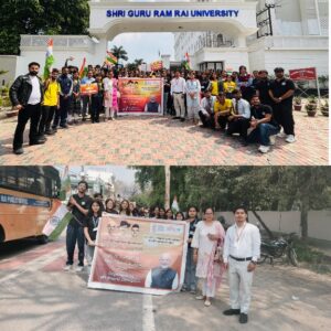 देहरादून :- शहीदी दिवस के अवसर पर मेरा युवा भारत देहरादून के तत्वावधान में श्री गुरु राम राय विश्वविद्यालय में एक भव्य पदयात्रा का आयोजन किया गया। कार्यक्रम के मुख्य अतिथि डीन स्टूडेंट वेलफेयर डॉ. मालविका रही। इस अवसर पर एनएसएस के कार्यक्रम अधिकारी श्री आनंद एवं श्रीमती कमला जी की गरिमामयी उपस्थिति रही। मेरा युवा भारत देहरादून की उपनिदेशक मोनिका नांदल ने जानकारी देते हुए कहा कि कार्यक्रम का शुभारंभ देश के महान स्वतंत्रता सेनानियों शहीद राजगुरु, भगत सिंह एवं सुखदेव के चित्रों पर पुष्प अर्पित कर किया गया। उपस्थित अतिथियों द्वारा युवाओं को देशभक्ति, कर्तव्यनिष्ठा एवं सामाजिक जिम्मेदारी के प्रति प्रेरित किया गया।
