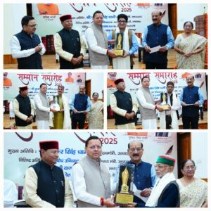 देहरादून :- मुख्यमंत्री पुष्कर सिंह धामी ने मुख्य सेवक सदन, मुख्यमंत्री आवास में उत्तराखंड भाषा संस्थान द्वारा आयोजित उत्तराखंड साहित्य गौरव सम्मान समारोह-2025 में उत्तराखंड के सर्वोच्च साहित्यिक सम्मान “उत्तराखंड साहित्य भूषण सम्मान” से डॉ. जितेन ठाकुर को सम्मानित किया।