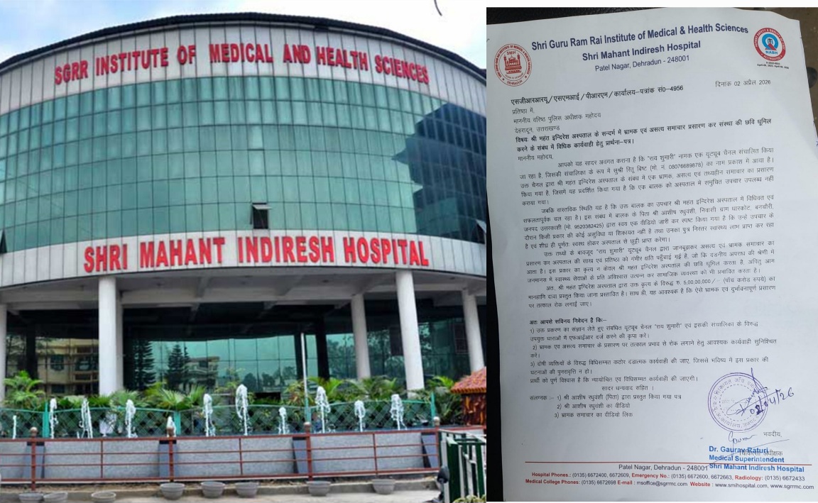 श्री महंत इन्दिरेश अस्पताल ने वरिष्ठ पुलिस अधीक्षक को तहरीर देकर राय शुमारी यूट्यूब चैनल पर कड़ी कार्रवाई की मांग की।