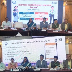 उत्तराखंड में जनगणना के प्रथम चरण – मकानसूचीकरण एवं मकानों की गणना का कार्य 25 अप्रैल से 24 मई, 2026 के बीच 30 दिन की अवधि में पूरे राज्य में संचालित किया जाएगा तथा घर-घर सर्वेक्षण से पहले 10 अप्रैल से 24, अप्रैल 2026 के बीच 15 दिन की अवधि प्रदेशवासियों को स्व-गणना के लिए प्रदान की गई है, जिससे प्रदेशवासी अपने मोबाइल नंबर और बुनियादी क्रेडेंशियल्स का उपयोग करके se.census.gov.in पोर्टल पर लॉग इन कर प्रगणक के आने से पहले बड़ी आसानी से अपना विवरण डिजिटल रूप से स्वयं दर्ज कर सकते हैं। स्व -गणना एक सुरक्षित और वेब आधारित सुविधा है, जो 16 क्षेत्रीय भाषाओं में उपलब्ध है।
