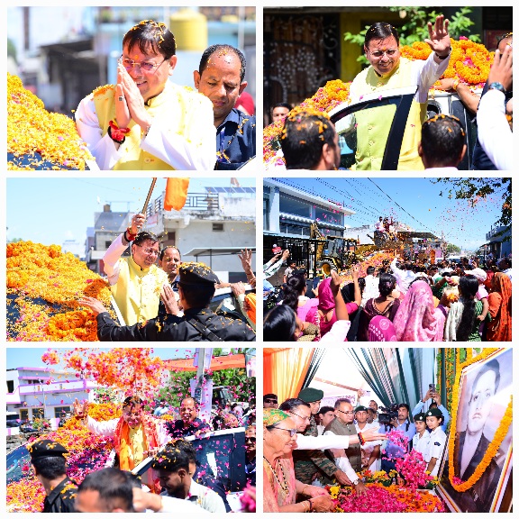मुख्यमंत्री का रोड शो में जनता व जनप्रतिनिधियों ने पुष्पवर्षा कर भव्य स्वागत किया।