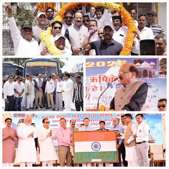 देहरादून/ऋषिकेश :- ऋषिकेश में संयुक्त रोटेशन यात्रा व्यवस्था समिति द्वारा आयोजित कार्यक्रम में चारधाम यात्रा–2026 का शुभारंभ किया गया, जिसमें प्रदेश के मुख्यमंत्री पुष्कर सिंह धामी एवं कैबिनेट मंत्री सुबोध उनियाल ने यात्रा बसों को हरी झंडी दिखाकर रवाना किया।