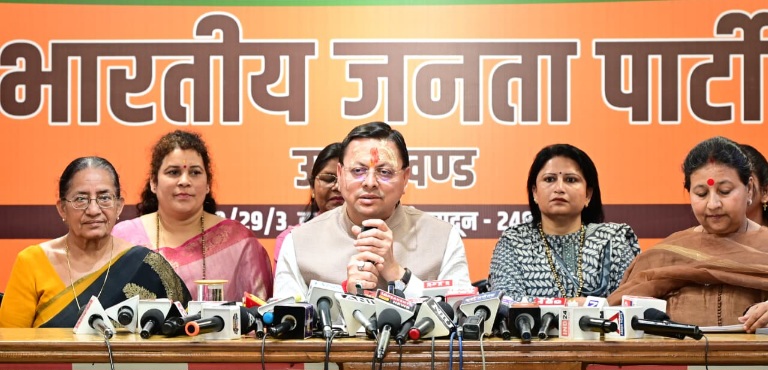 देहरादून :- मुख्यमंत्री पुष्कर सिंह धामी ने आज भाजपा प्रदेश कार्यालय, देहरादून में आयोजित एक विस्तृत एवं महत्वपूर्ण प्रेस कांफ्रेंस के दौरान नारी शक्ति वंदन अधिनियम से संबंधित विषय पर विपक्ष के महिला विरोधी रवैये के संबंध में अपने विचार और तथ्य विस्तारपूर्वक रखे। उन्होंने इस विषय को केवल एक विधायी पहल नहीं, बल्कि देश की आधी आबादी के अधिकारों, सम्मान और सशक्तिकरण से जुड़ा हुआ ऐतिहासिक अवसर बताया।