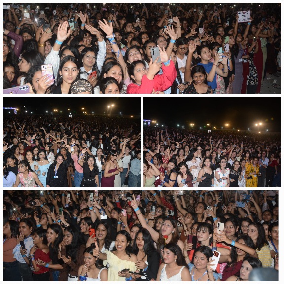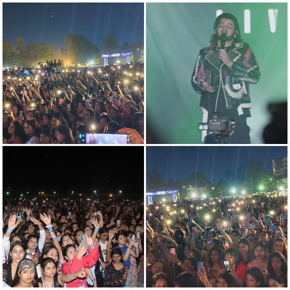 बालीवुड गायक विशाल मिश्रा के सुरों से सजी स्टार नाइट में रोमांस का ऐसा जादू छाया कि पूरा माहौल रोमांटिक हो उठा। अपनी भावपूर्ण आवाज और दिल को छू लेने वाली प्रस्तुति के लिए मशहूर विशाल मिश्रा ने स्टेज पर एक के बाद एक कई शानदार परफॉर्मेंस देकर दर्शकों को मंत्रमुग्ध कर दिया। “पहले भी मैं”, “कैसे हुआ”, “जानिये”, “तेरी हो गईयां”, “दिल झूम”, “जिआल ए मिस्किन”, “चल तेरे इश्क में”, “मांझा” और “क्या बताऊं तुझे” जैसे सुपरहिट लव सॉन्ग्स की प्रस्तुति ने खासतौर पर युवाओं और कपल्स के दिलों में अलग ही उत्साह भर दिया। जेनजी जनरेशन की भावनाओं, उनके प्यार के अंदाज और आधुनिक रिश्तों की नजाकत को बखूबी दर्शाते हुए विशाल मिश्रा ने अपनी गायकी से हर दिल को जोड़ दिया। उनकी हर प्रस्तुति पर दर्शक झूम उठे और मोबाइल फ्लैशलाइट्स के बीच बना रोमांटिक माहौल देर रात तक यादगार बना रहा।